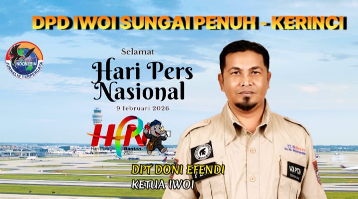 DPD IWOI Sungai Penuh Kerinci menutup dengan ucapan Selamat Hari Pers Nasional 9 Februari 2026, berharap pers Indonesia terus profesional, berintegritas, dan menjadi cahaya bagi bangsa. (tim)