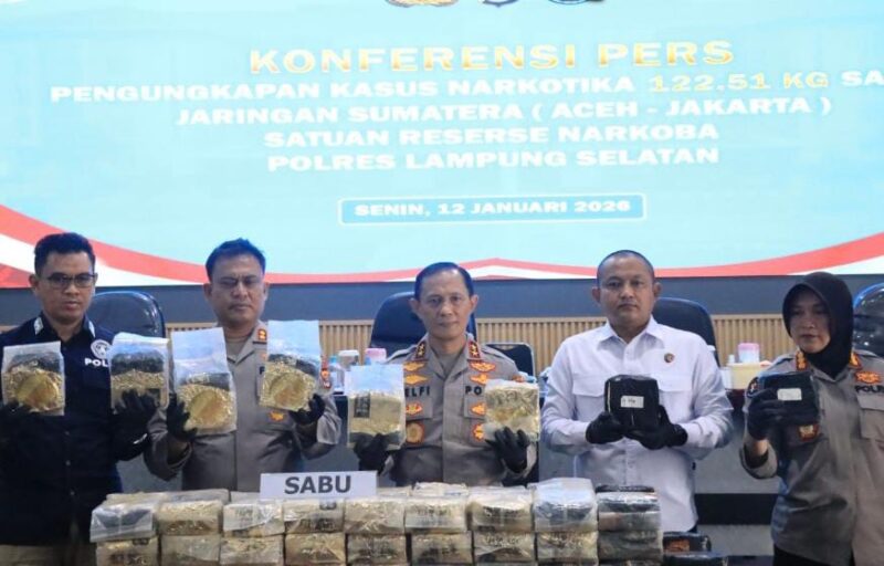 suarabrita.com lampung selatanPolres Lampung Selatan membongkar penyelundupan 122,51 kilogram sabu di Pelabuhan Bakauheni.